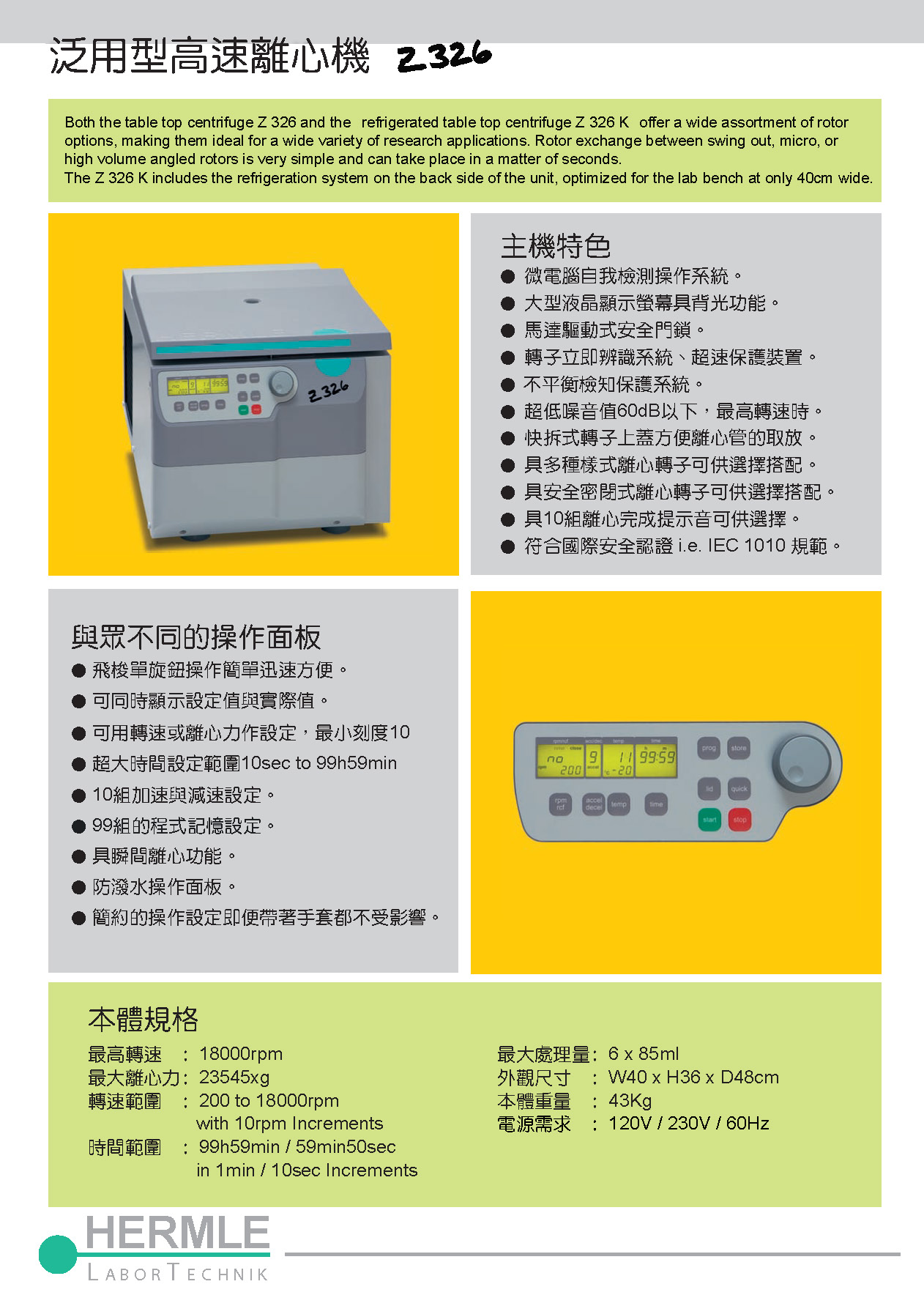 德國Hermle Z326/K 泛用高速型離心機/高速冷凍型離心機