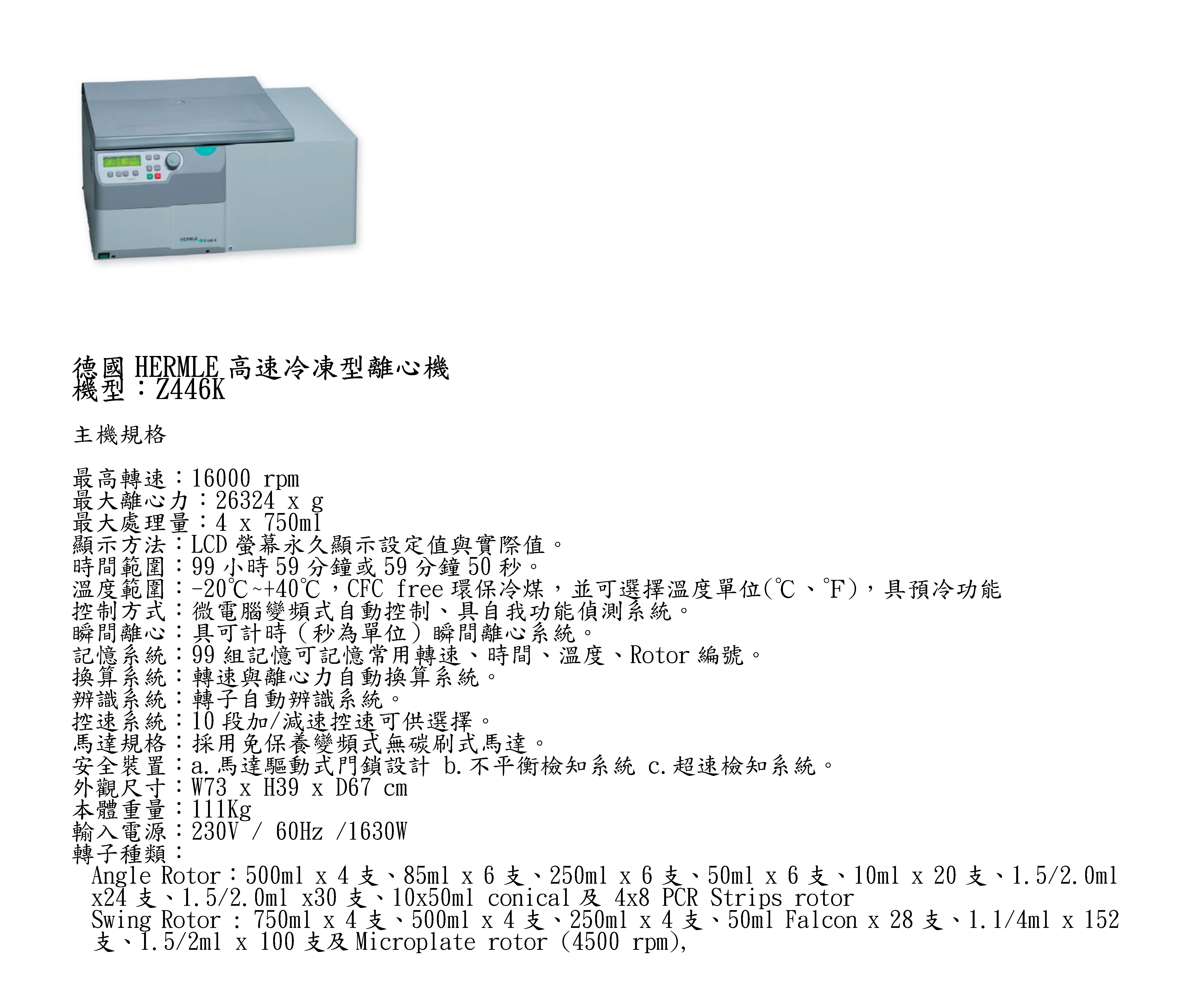 德國Hermle Z466/K 泛用高速型大容量離心機/冷凍大容量離心機