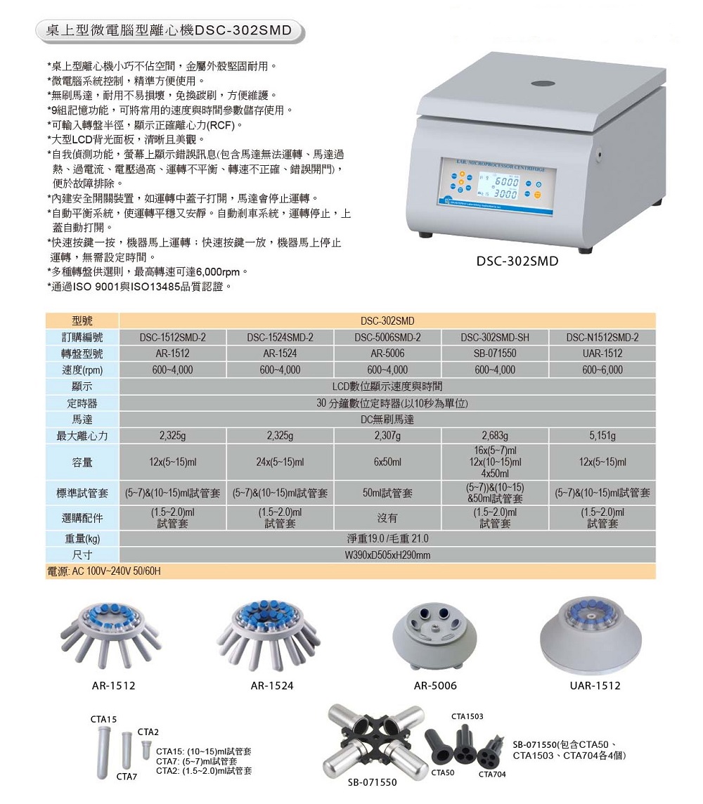 DSC-302SMD 桌上型微電腦型離心機