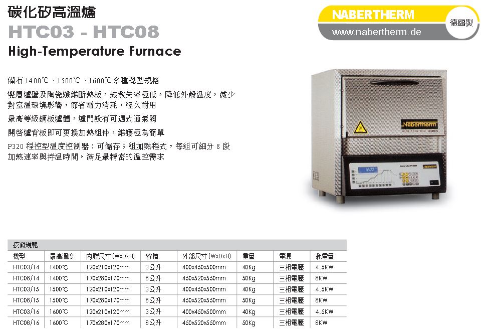 Nabertherm HTC03~HTC08 碳化矽高溫爐~1600度