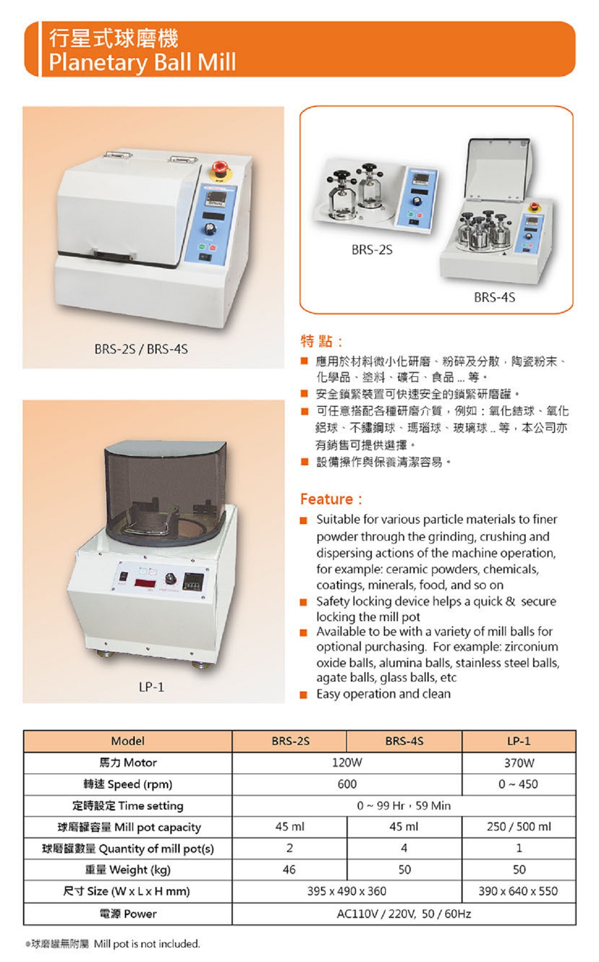 BRS-2S/4S/LP-1 行星式球磨機