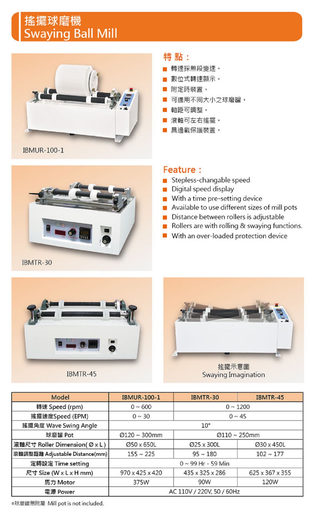 IBMUR/IBMTR 搖擺球磨機
