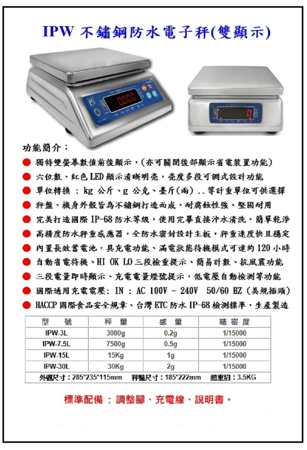 IPW 不銹鋼防水電子秤