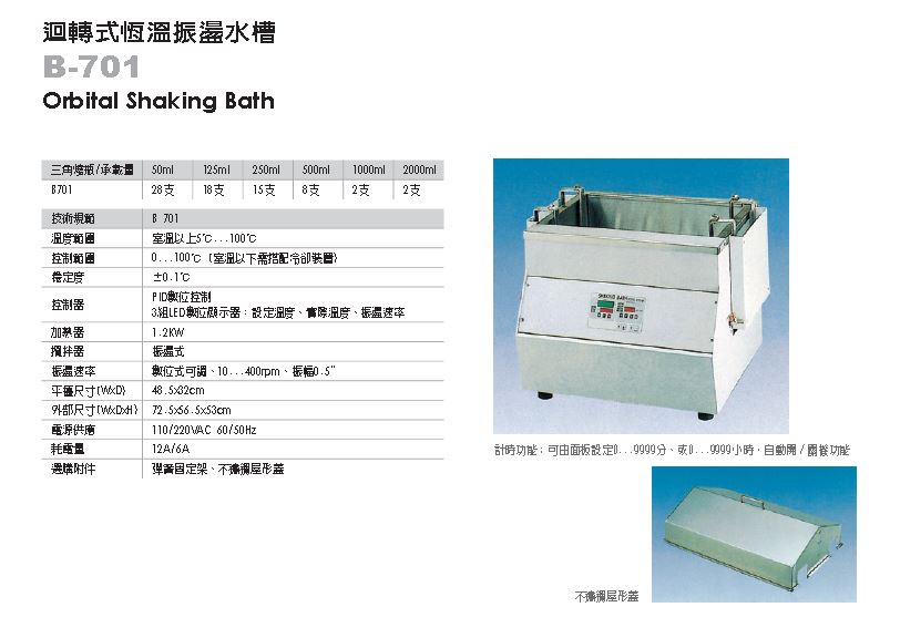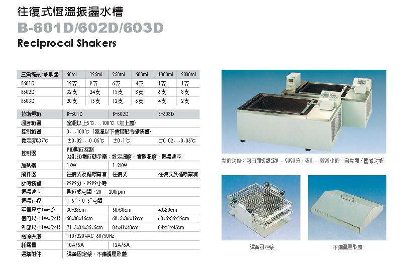 B-601~603D 往復式恆溫振盪水槽/ B-701 迴轉式恆溫振盪水槽