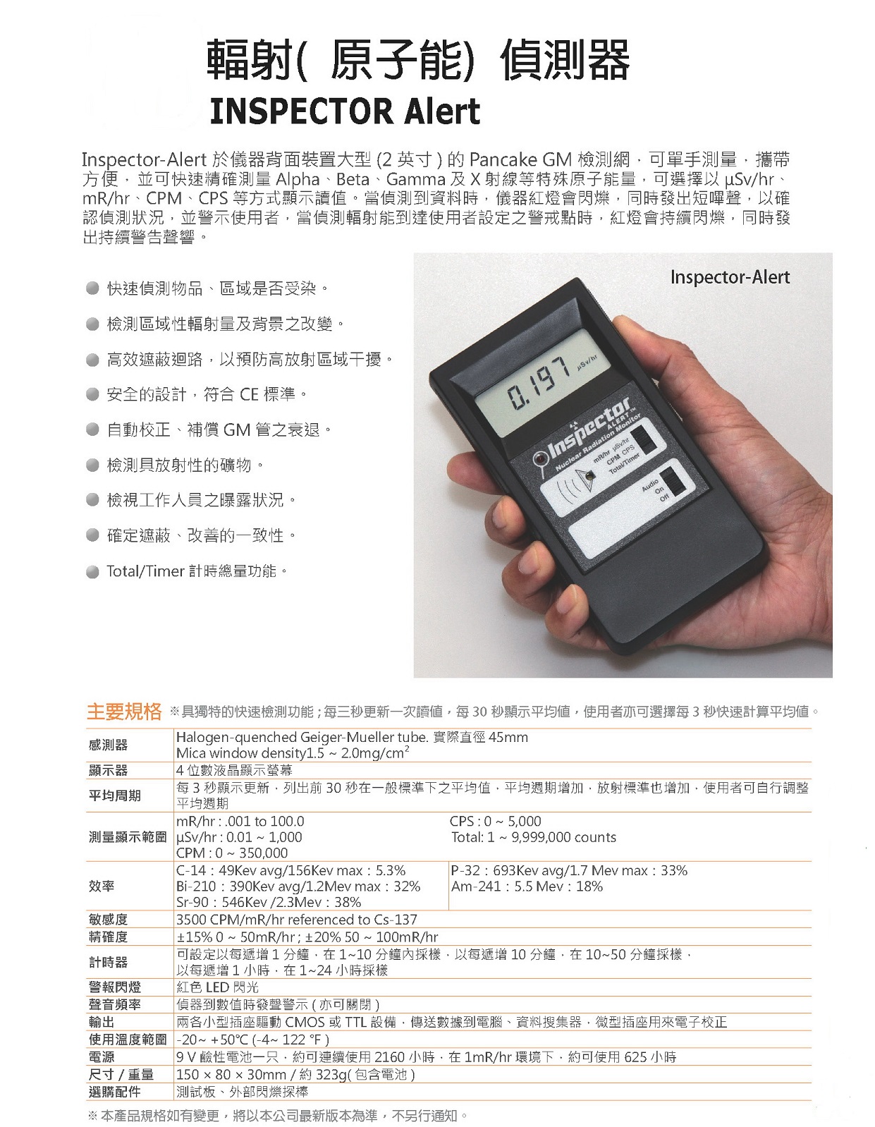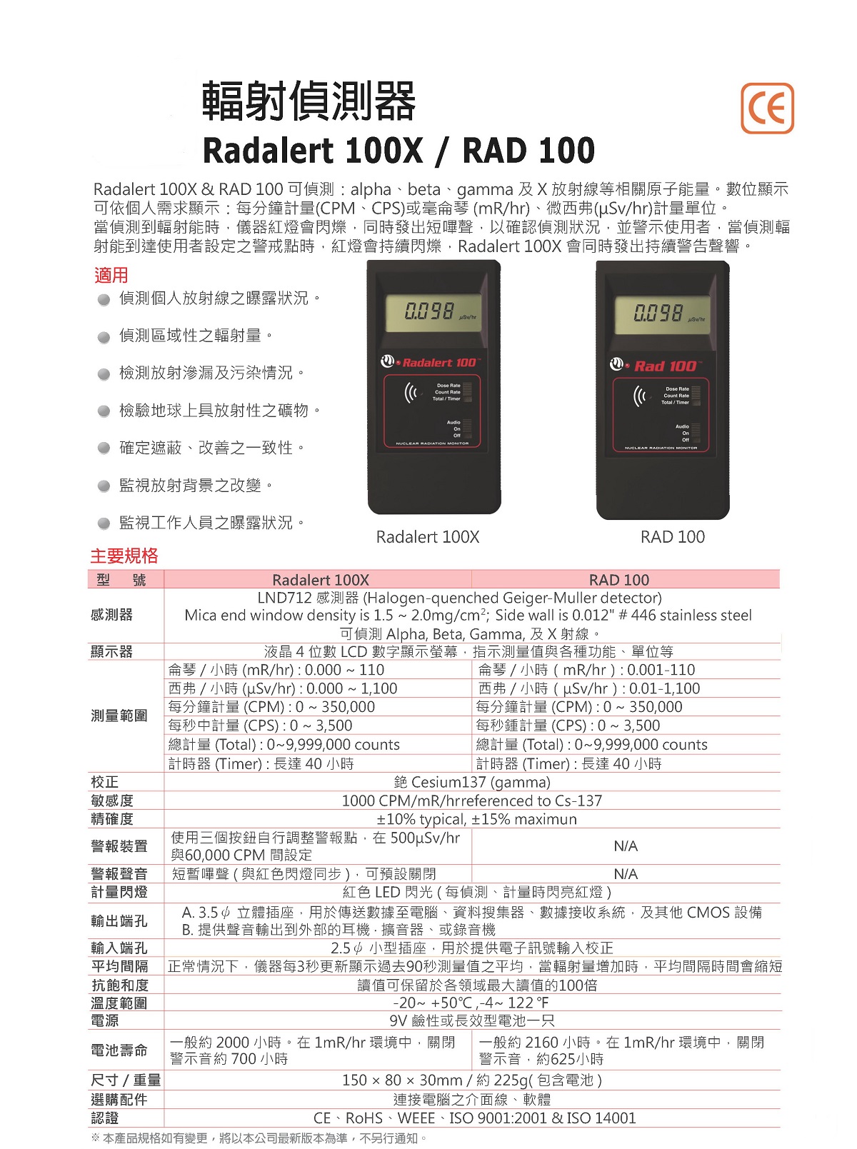 Radalert 100X/ RAD 100/ INSPECTOR Alert 輻射偵測器