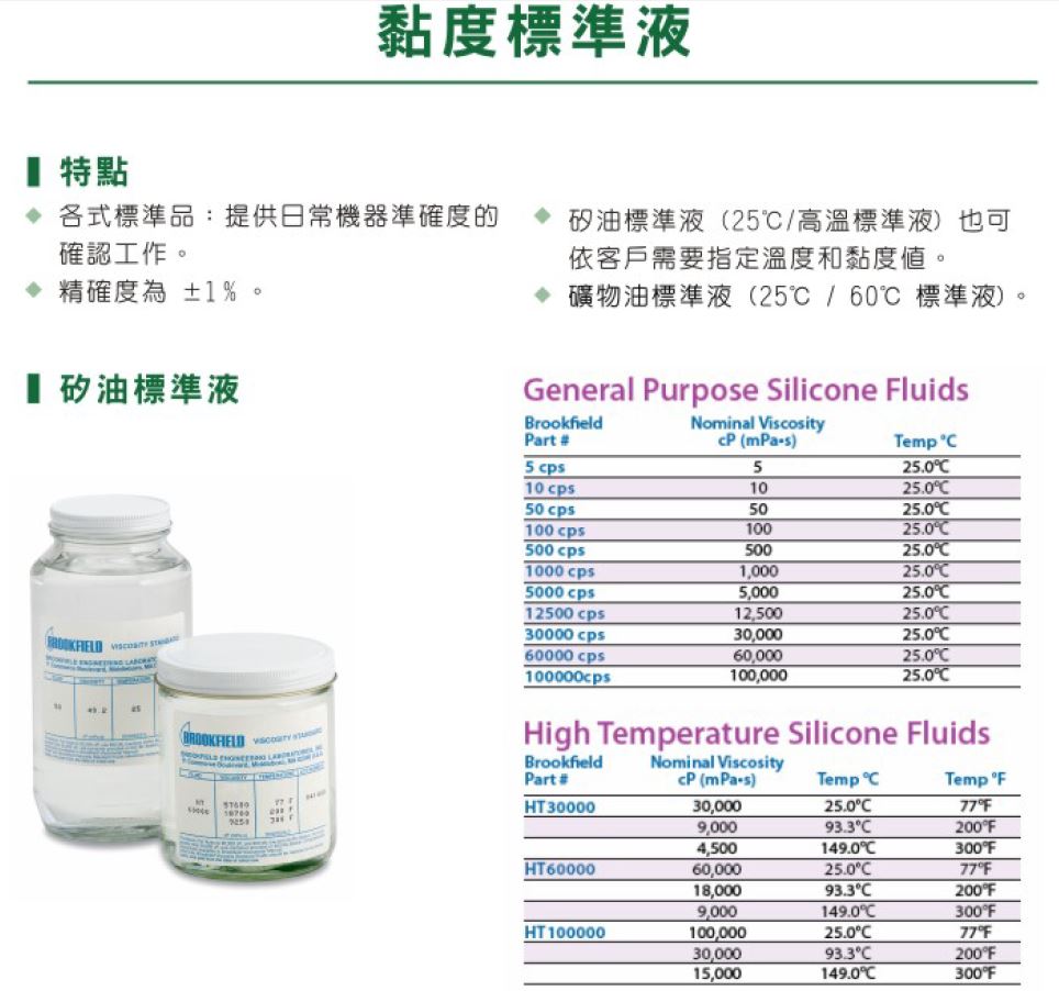 Brookfield 矽油黏度標準液