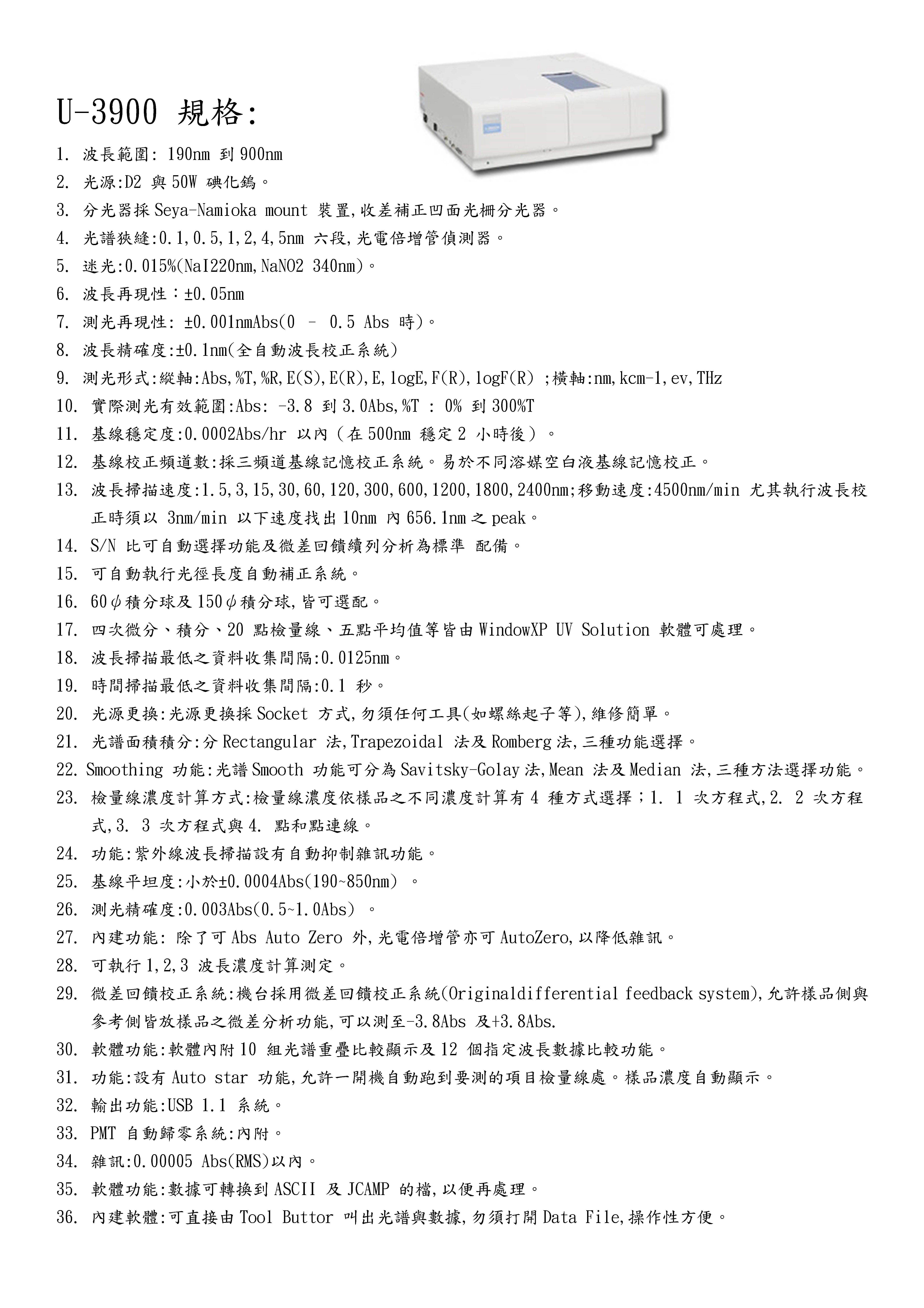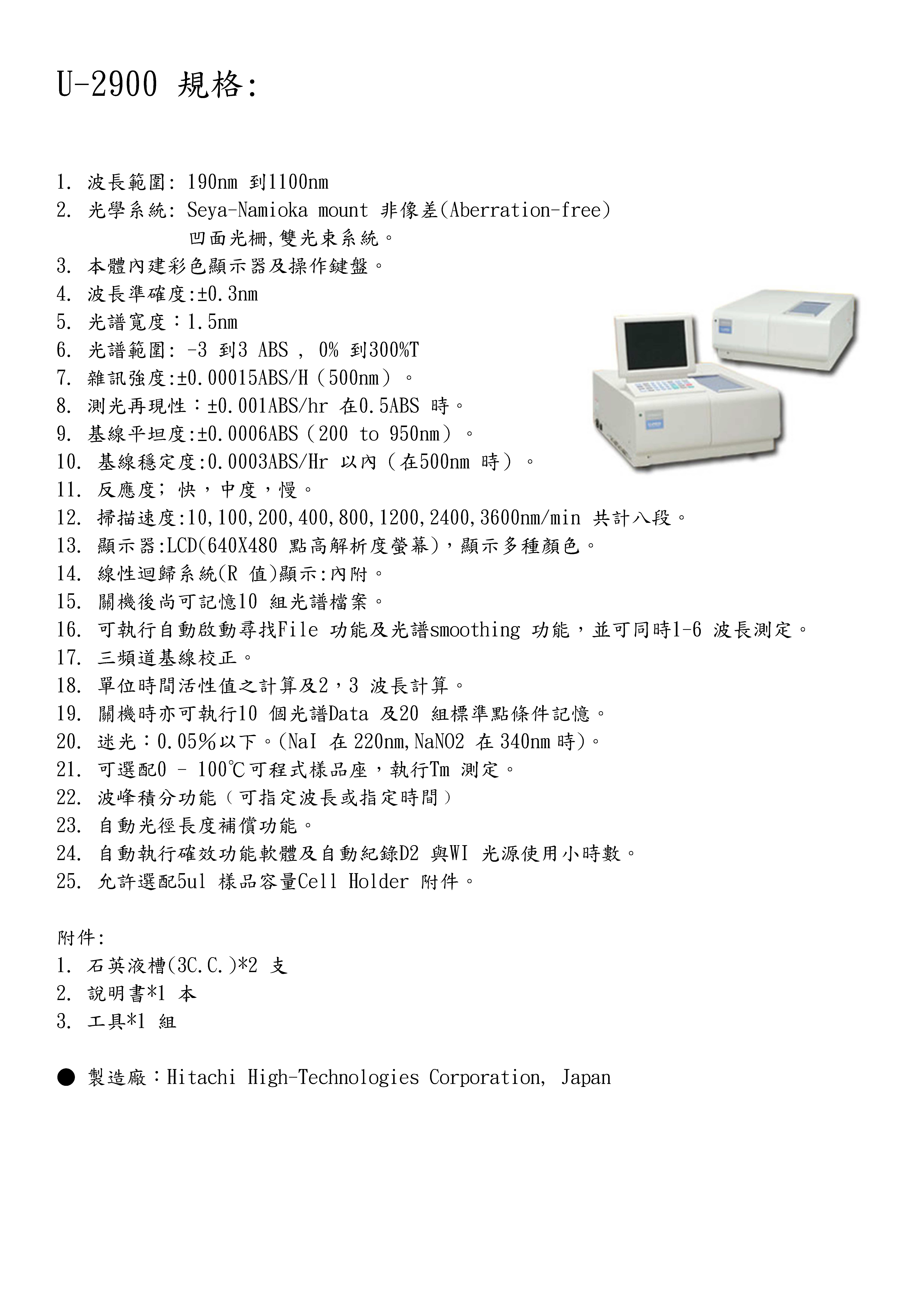Hitachi U-2900/3900 UV/VIS分光光譜儀