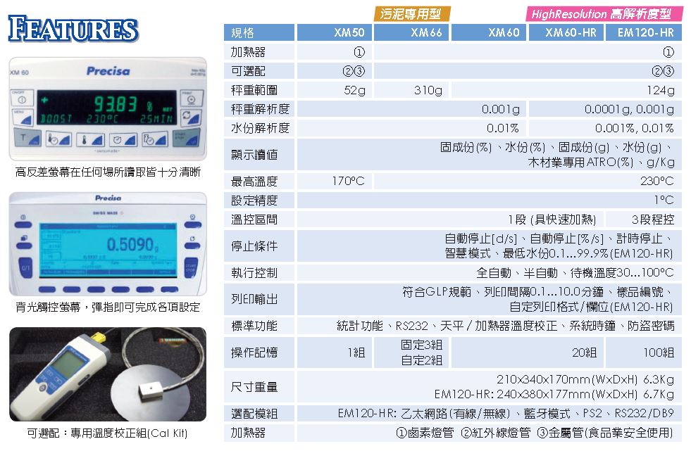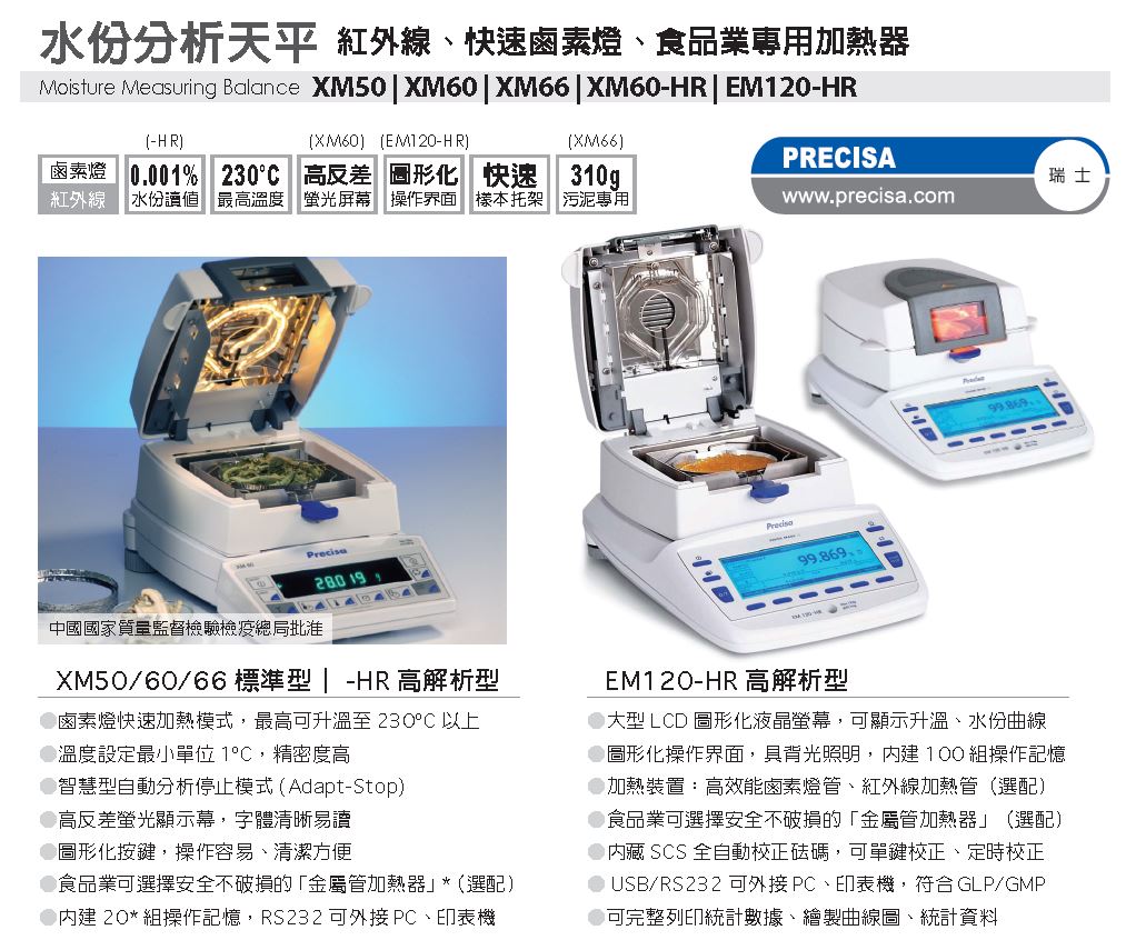 Precisa XM50/60/66/ EM120-HR 水份分析儀