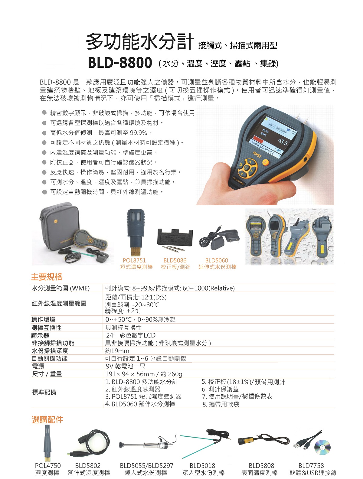 M72-SC/Scanner D/BLD-5365/BLD-8800 接觸/掃描式 多功能水份計