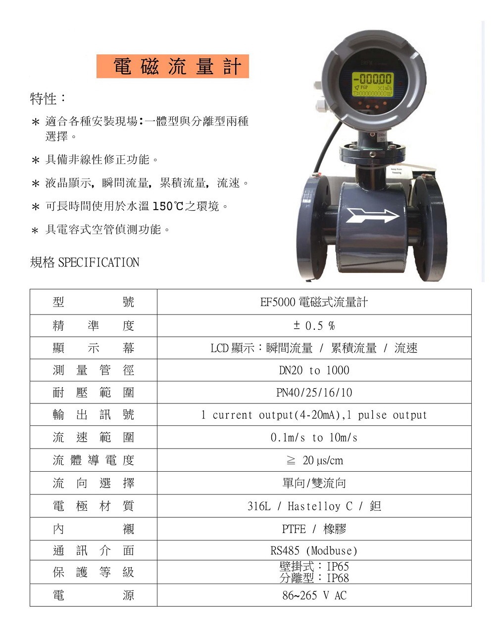 EF5000/5002 電磁式流量計