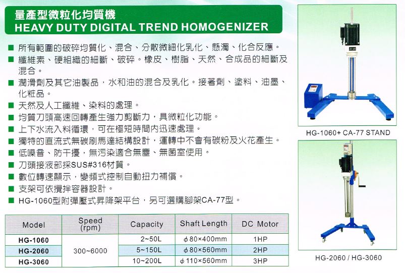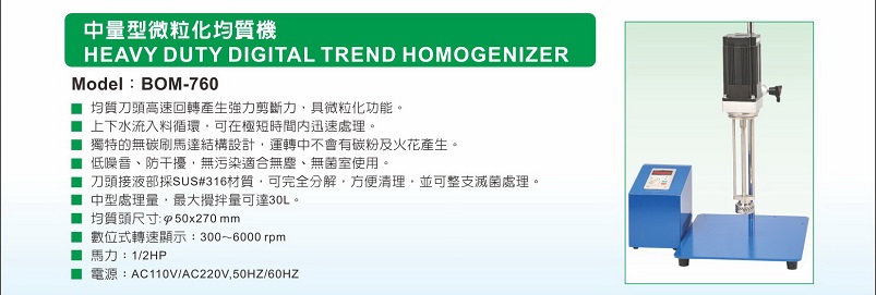 BOM-760/HG-1060/2060/3060系列 中量產型微粒化均質機